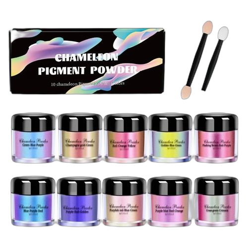- 10 couleurs de poudre de mica caméléon : raisin, bleu sarcelle, champagne, galaxie, bronze, fuchsia, bleu et or