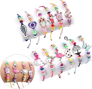 12 pièces lorfancy enfants filles femmes bijoux bracelets pendentif animal licorne hibou mignon multicolore tissé bracelet pour prix semblant jouer fête pour filles enfants bracelets d’amitié, pas de taille, strass.