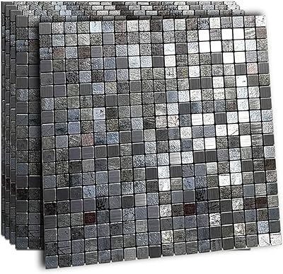 5 feuilles autocollantes en aluminium mosaïque métallique 3d à décoller et à coller pour cuisine et salle de bain (bronze 12″ x 12″) (gris et argent).