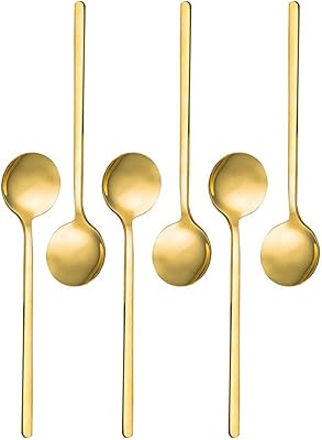 6 cuillères à expresso, cuillères à mélanger, pour café, sucre, dessert, gâteau, soupe à la crème glacée antipasto cappuccino (or).