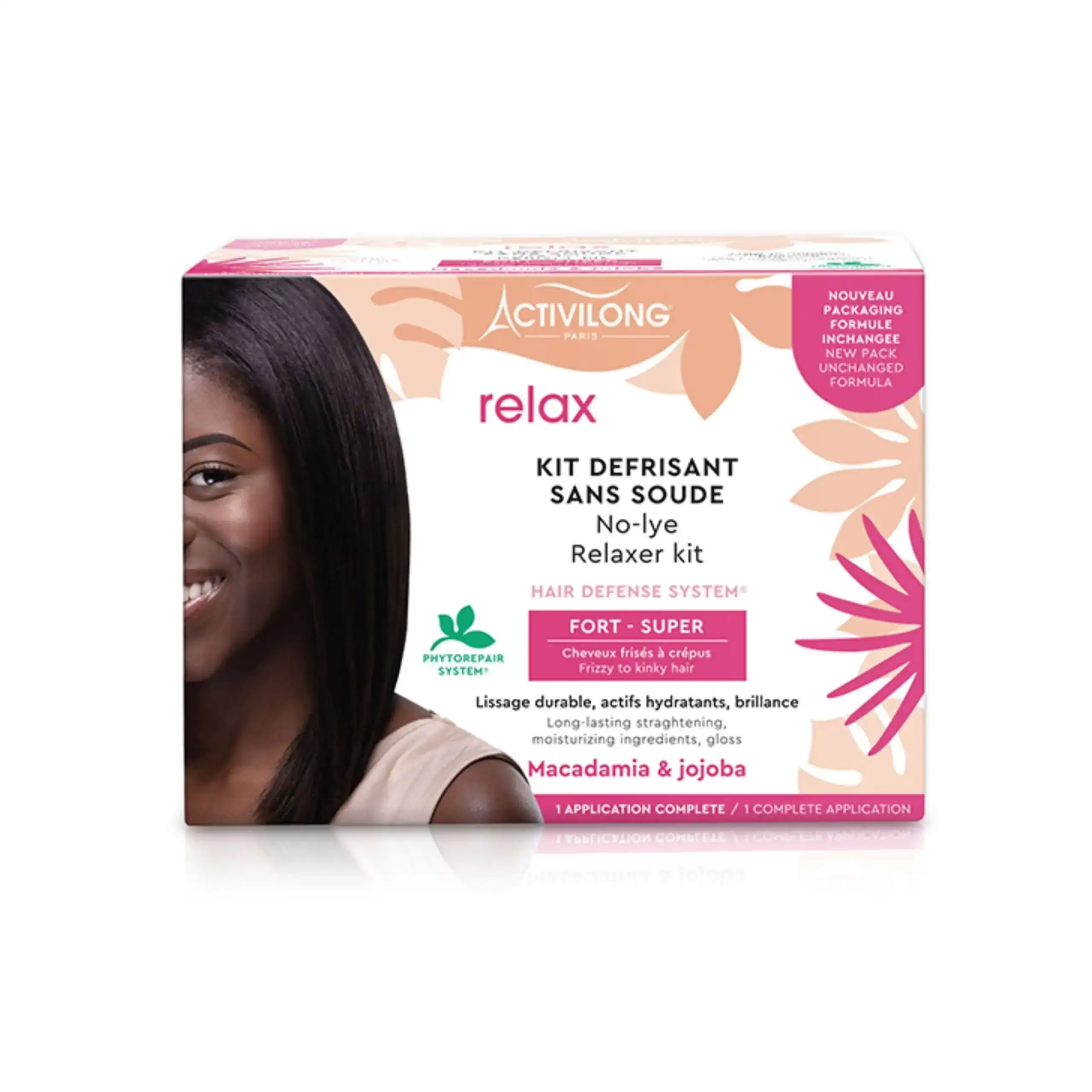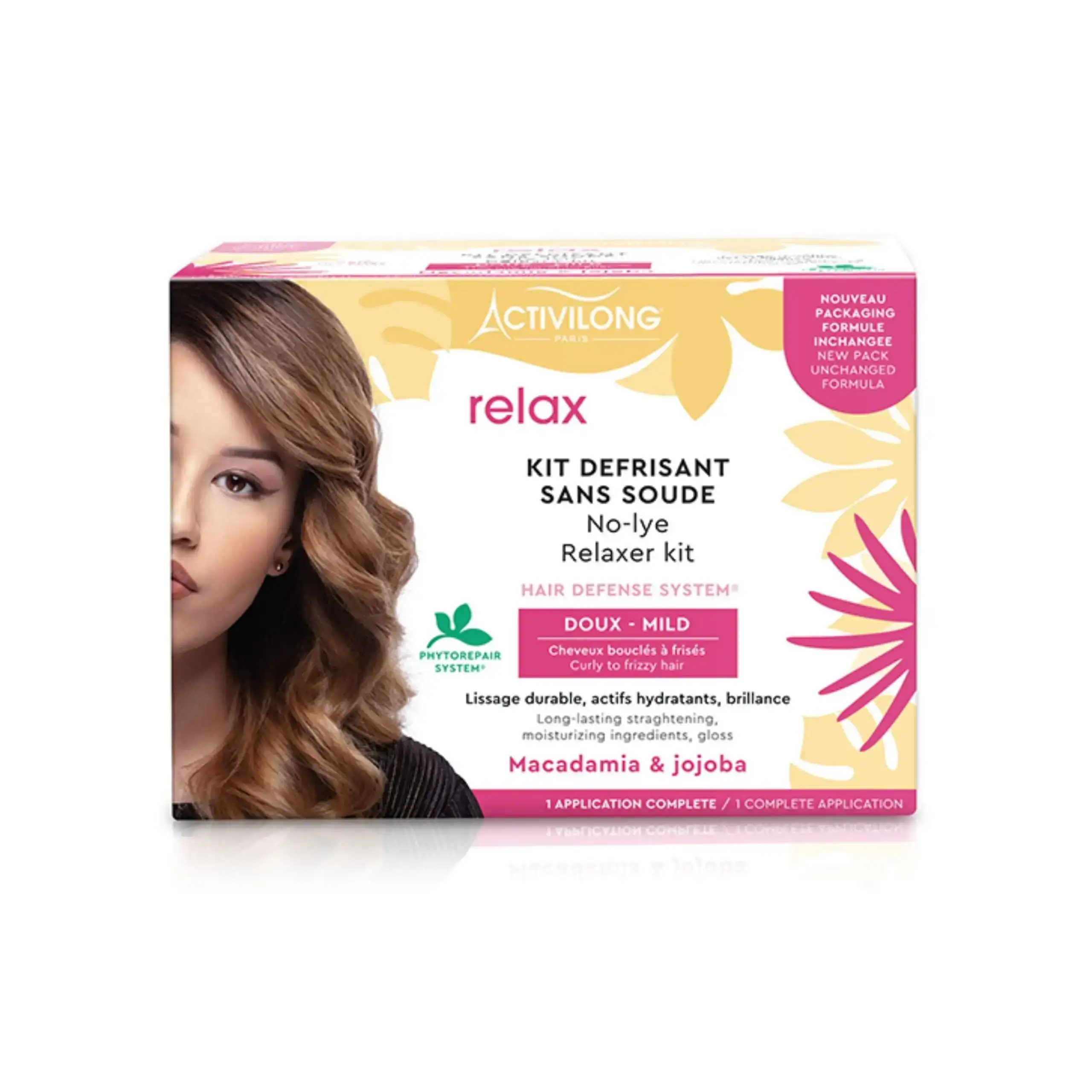 Le Kit de Défrisant sans soude Activilong enrichi en huile de macadamia et de jojoba est idéal pour lisser les cheveux texturisés. Sa formule concentrée en huile apporte hydratation et brillance aux cheveux après le défrisage. Lissage durable avec un résultat incomparable Actifs hydratants Sans Soude Existe en 3 formules : Doux/ Mild : Cheveux Fins et Fragiles Normal/ Regular : Cheveux Fins à Normaux Fort/ Super : Cheveux épais et résistants Conseils d’utilisation : Lire impérativement le mode d’emploi avant toute utilisation. Précautions d’emploi : Ne convient pas aux enfants Ne pas utiliser sur le cuir chevelu irrité ou lésé Utiliser uniquement la force adaptée à son type de cheveux En cas de contact avec les yeux, rincer immédiatement Ce kit contient les produits pour une application :1 pot de crème défrisante sans soude : 200g1 sachet d’activateur crème : 30g1 sachet d Régulateur Cuticulaire : 25 ml1 flacon de shampoing neutralisant avec indicateur coloré : 50ml1 sachet de lait capillaire Macadamia et Jojoba : 15 ml1 paire de gants et 1 spatule1 notice explicative complète Ingrédients : Crème Défrisante : Aqua ( Water), Paraffinum Liquidum ( Mineral Oil), Behenyl Alcohol, Guanidine Carbonate, Cera Microcristallina ( Microcrystalline Wax), Propylene Glycol, Beheneth-25, Cetyl Alcohol, Peg-75 Lanolin, Polyquaternium-6, Parfum ( Fragrance), Butyrospermum Parkii ( Shea) Butter, Calophyllum Tacamahaca Seed Oil, Macadamia Ternifolia Seed Oil, Oxidized Corn Oil, Simmondsia Chinensis ( Jojoba) Seed Oil, Bht. Crème Activatrice : C11-13 Isoparaffin, Calcium Hydroxide, Paraffinum Liquidum ( Mineral Oil), Laureth-4, Disteardimonium Hectorite, Propylene Carbonate, Bht. Régulateur Cuticulaire : Aqua ( Water), Polyquaternium-10, Urea, Peg-75 Lanolin, Polyquaternium-22, Phenethyl Alcohol, Hydrolyzed Sweet Almond Protein, Panthenol, Parfum ( Fragrance), Tetrasodium Edta, Aloe Barbadensis Leaf Juice Powder, Ethylhexylglycerin, Propylene Glycol, Ananas Sativus ( Pineapple) Fruit Extract, Citrus Limon ( Lemon) Fruit Extract, Passiflora Edulis Fruit Extract, Saccharum Officinarum ( Sugar Cane) Extract, Alcohol Denat., Sodium Benzoate, Hibiscus Sabdariffa Flower Extract, Sorbitol, Bht, Citric Acid, Tocopherol, Phenoxyethanol, Potassium Sorbate, Disodium Edta, Sodium Bisulfite. Shampooing Neutralisant : Aqua ( Water), Sodium Laureth Sulfate, Cocamidopropyl Betaine, Coco- Glucoside, Peg-200 Hydrogenated Glyceryl Palmate, Maris Sal ( Sea Salt), Parfum ( Fragrance), Peg-7 Glyceryl Cocoate, Quaternium-80, Disodium Edta, Sodium Benzoate, Potassium Sorbate, Citric Acid, Limonene, Propylene Glycol, Phenolsulfonphthalein. Lait Capillaire : Aqua ( Water), Helianthus Annuus ( Sunflower) Seed Oil, Triisostearin, Coco- Caprylate/ Caprate, Cetearyl Alcohol, Cetyl Palmitate, Cetearyl Glucoside, Macadamia Ternifolia Seed Oil, Simmondsia Chinensis ( Jojoba) Seed Oil, Quaternium-91, Phenethyl Alcohol, Cetrimonium Methosulfate, Parfum ( Fragrance), Tocopheryl Acetate, Panthenol, Glycerin, Tribehenin, Ethylhexylglycerin, Cetyl Alcohol, Aloe Barbadensis Leaf Juice Powder, Limonene, Rosmarinus Officinalis ( Rosemary) Leaf Extract, Cinnamal, Eugenol, Citric Acid, Tocopherol.