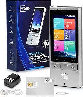 Appareil de traduction de langue vavus – plan de données intégré – carte sim, wi-fi, traduction hors ligne – 109 langues et nettoyeur, bluetooth pour airpods, traduction audio et photo bidirectionnelle – enregistrement vocal.