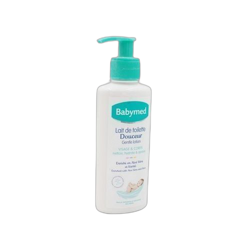 - Lait de Toilette Douceur BABYMED : Formulé avec du karité et de l’aloe vera, ce lait procure une hydratation intense, laissant la peau douce et protégée. Son parfum doux et agréable ravira vos sens.