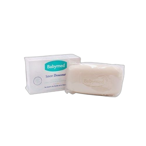 - Savon Douceur BABYMED : Un savon quotidien qui nettoie délicatement la peau de votre bébé tout en respectant son épiderme sensible. Enrichi en actifs nettoyants doux, il prévient le dessèchement et laisse la peau propre et saine.