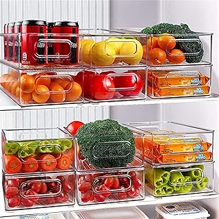 Bacs de rangement pour réfrigérateur, paniers de rangement transparents pour réfrigérateur de cuisine, rangement et organisation de garde-manger en plastique, organisateur de réfrigérateur, bacs de rangement pour réfrigérateur, organisateurs de placard – 6 pièces.