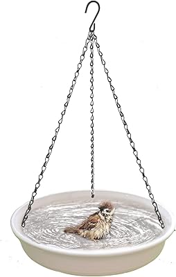 Bain d’oiseaux suspendu – plateau d’alimentation pour oiseaux et chauves-souris de jardin, plateau suspendu pour bain d’oiseaux, eau pour oiseaux ou graines d’oiseaux suspendues en extérieur (beige).
