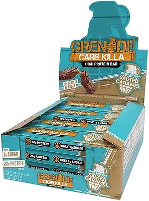 Barre sucrée grenade carb killa à haute teneur en protéines et faible en sucre, 12 x 60 g – pépites de chocolat au caramel salé, 12 pièces (paquet de 1).