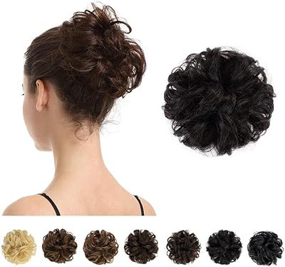 Barsdar extensions de cheveux 100 % humains avec queue de cheval, chignon, style bouclé, pour femmes et enfants (1b noir naturel).