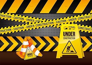 Beleco 8x6ft toile de fond en tissu en construction bannière de chantier de construction lignes d’avertissement noires et jaunes décorations de fête d’anniversaire sur le thème de la construction accessoires photo pour portrait d’enfants garçons.