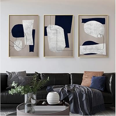 Blamke toile murale géométrique abstraite ligne noire, affiche imprimée ligne noire, tableau mural pour salon, b/sans cadre, 60 x 80 cm / 3 pièces.