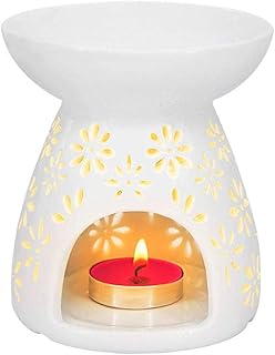Bougeoir en céramique pour décoration de bougies et huiles essentielles, couleur blanche sculptée