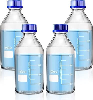 Bouteilles de stockage de médias rondes batelay, 4 pièces avec bouchon à vis bleu gl45 (1000 ml).