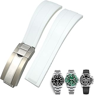 Bracelet de montre en caoutchouc janyu 20 mm 21 mm pour rolex daytona submariner gmt yacht-master oyster flex bracelet en silicone avec fermoir pliant (couleur : fermoir blanc brillant, taille : 20 mm).