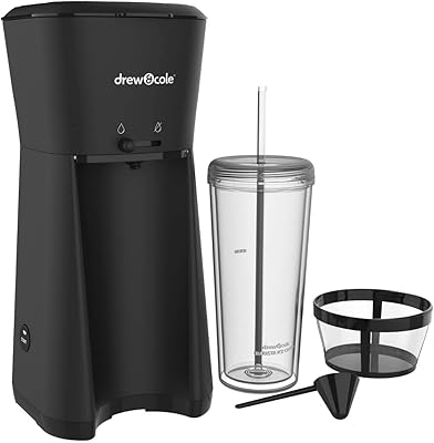 Cafetière glacée drew & cole barista – prête en moins de 4 minutes – filtre automatique – comprend une tasse isolante à double paroi avec couvercle, paille et cuillère à café.