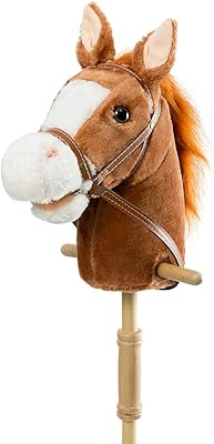 Canne de cheval d’extérieur avec roues en bois, jouet réaliste pour cheval qui court et qui dort, marron foncé, 90 cm (piles aa requises).