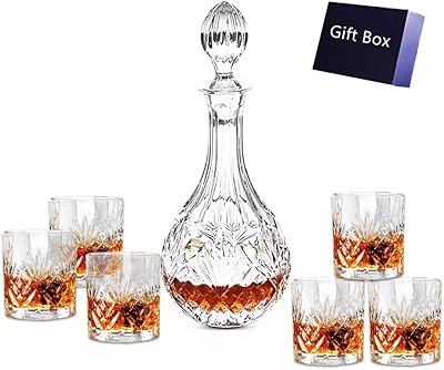 Carafe à whisky en cristal et 6 verres à liqueur, carafe à liqueur en verre élégante, carafes gravées parfaites pour bourbon, brandy et vodka, cadeaux de bourbon pour hommes.