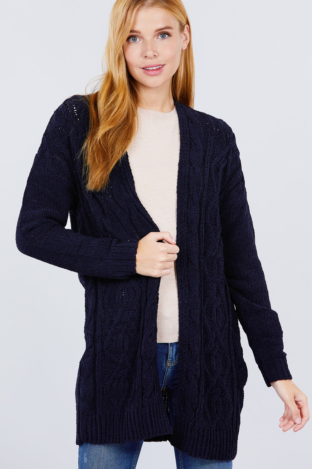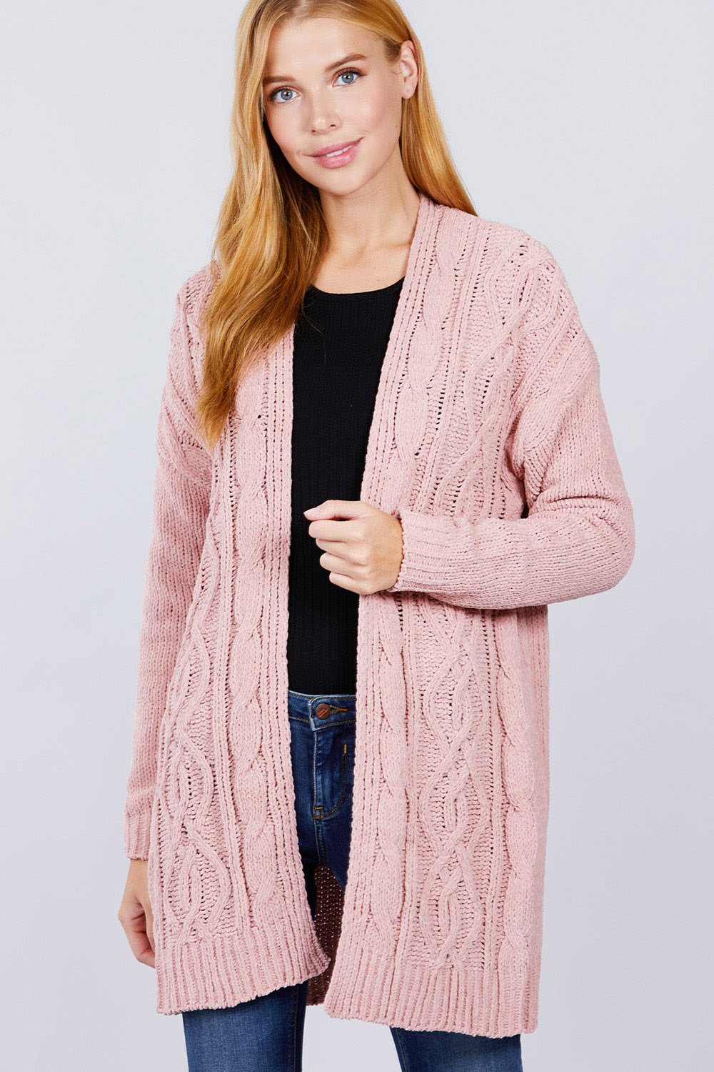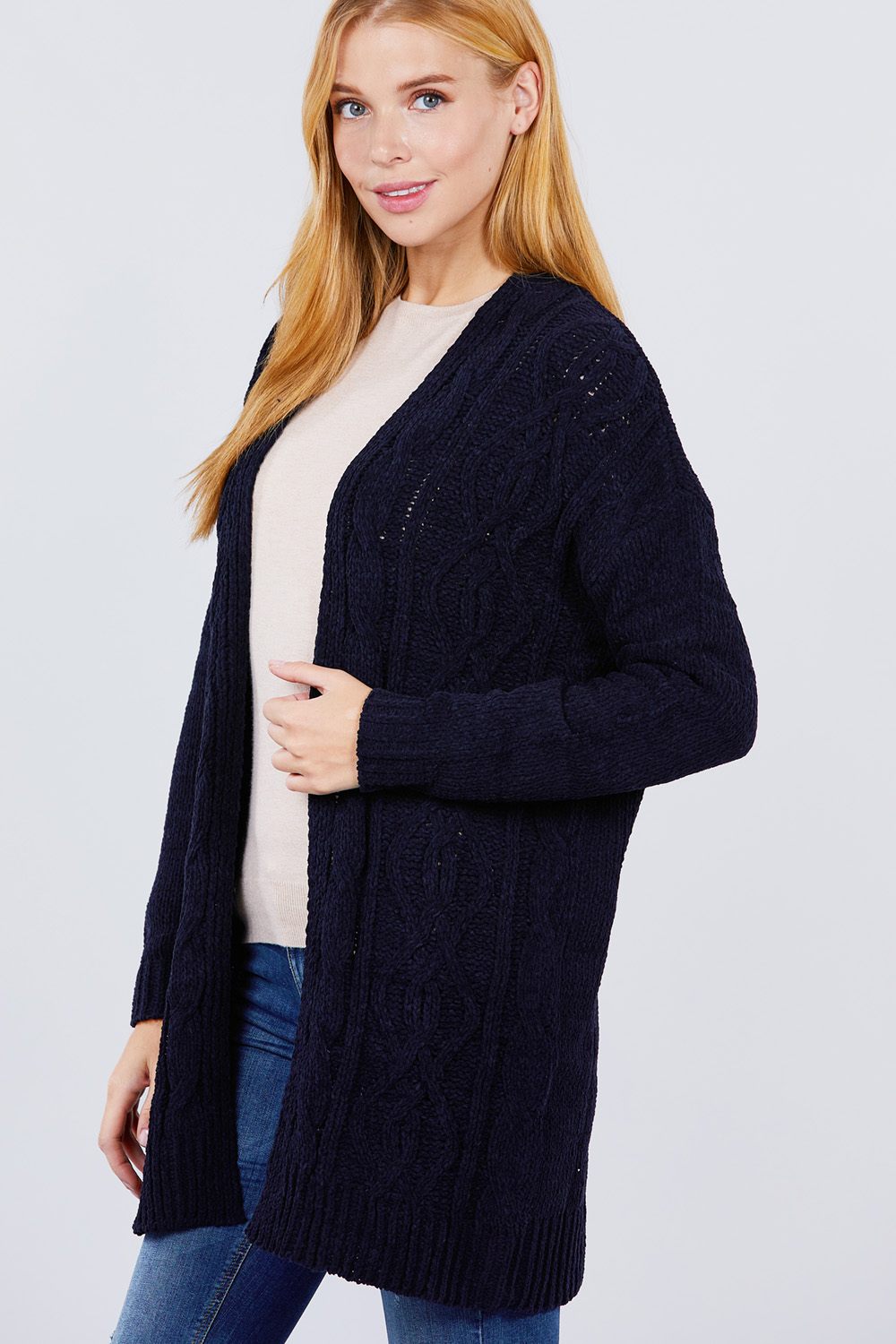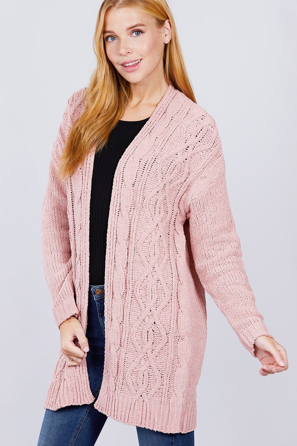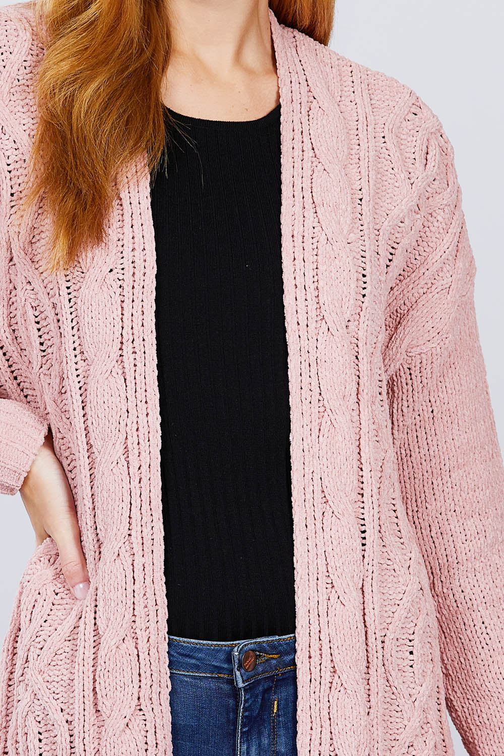 CARDIGAN PULL EN CHENILLE OUVERT SUR LE DEVANT À MANCHES LONGUES