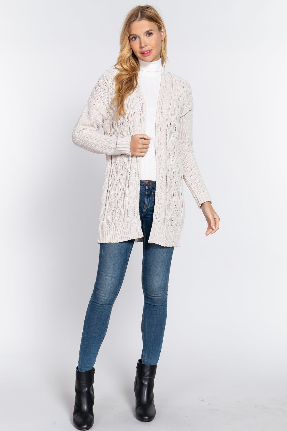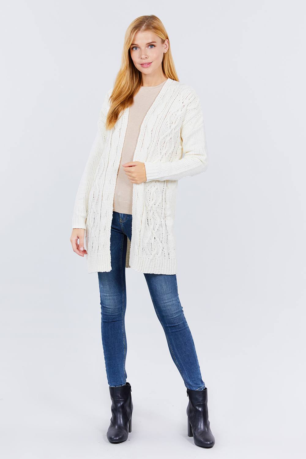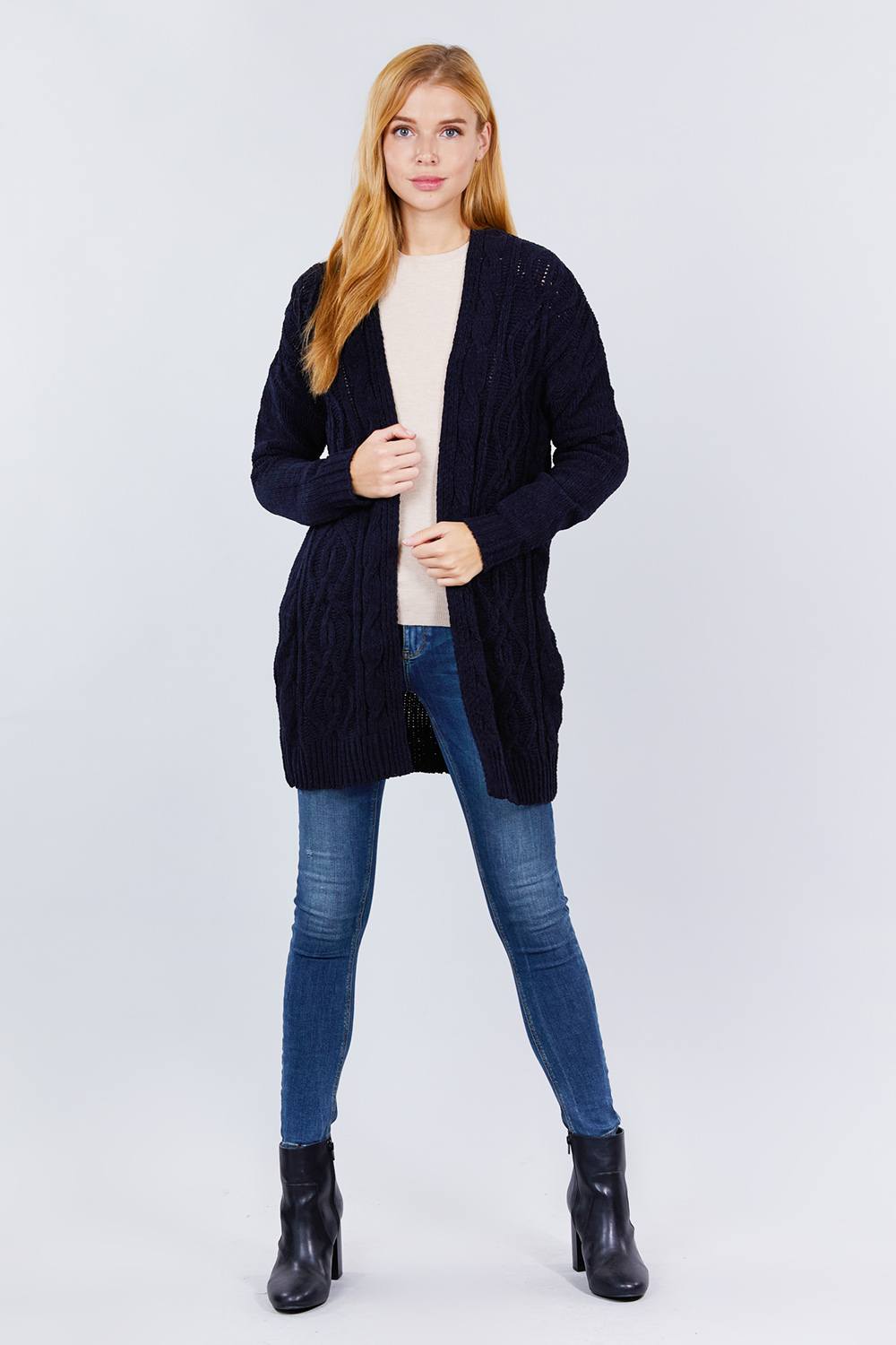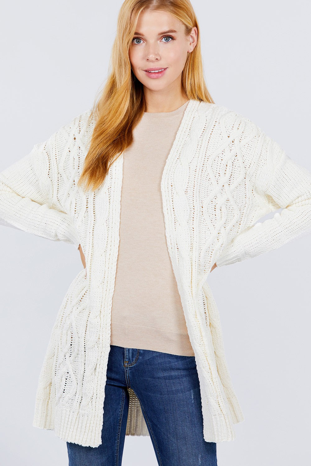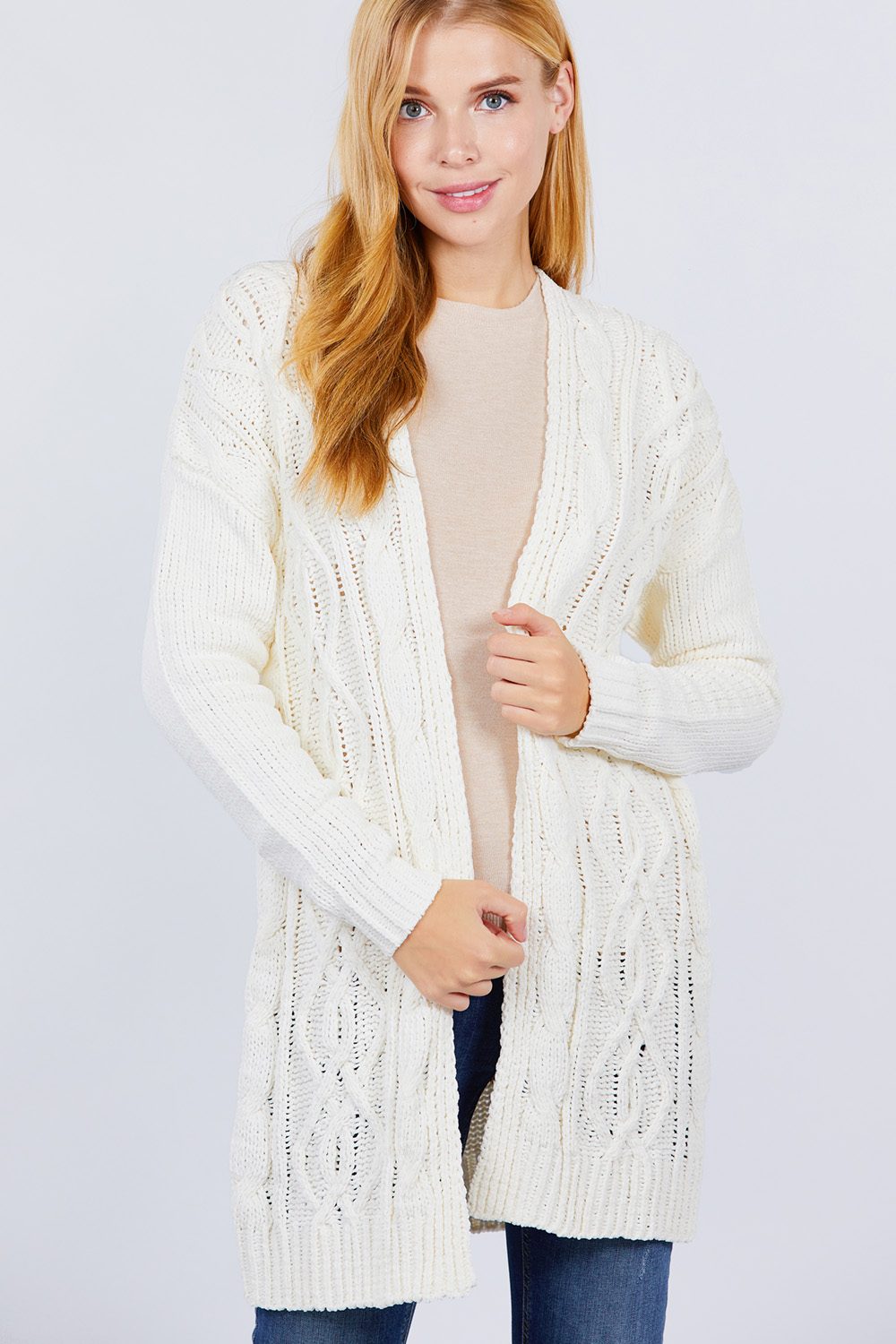 CARDIGAN PULL EN CHENILLE OUVERT SUR LE DEVANT À MANCHES LONGUES