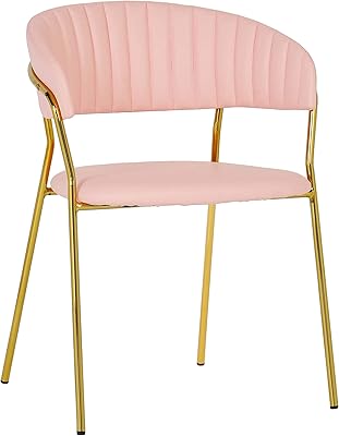 Chaises rembourrées en tissu velours avec pieds en métal pour la décoration de la maison et de l’hôtel (couleur rose).