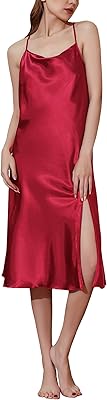 Chemise de nuit longue en soie pour femmes, robe de nuit sexy de luxe en satin rouge.