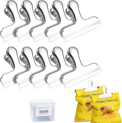 Clips pour sacs alimentaires en acier inoxydable bao bao you, paquet de 10,3