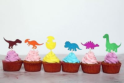 Confettis ! – 24 pièces de décorations de cupcakes dinosaures à paillettes, décorations