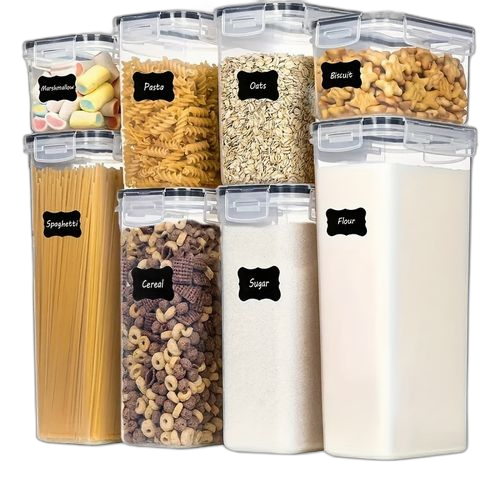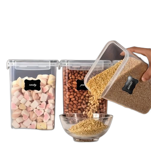 Une variété de céréales, de légumineuses, de flocons d’avoine et de pâtes peuvent tous être stockés facilement. La conception transparente du corps de la boîte permet de voir facilement la quantité restante à l’intérieur, ce qui facilite le réapprovisionnement. Nous vous fournissons également des étiquettes et des marqueurs pour que vous puissiez marquer le contenu du pot avec le nom et la date d’ouverture.