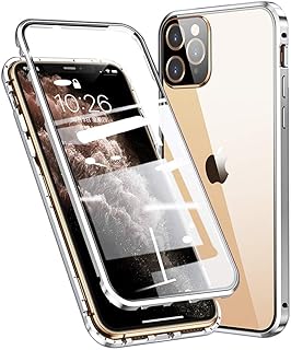 Coque de protection pour iphone 12 avec technologie d’absorption magnétique de colala, protection complète à 360 degrés en verre trempé 9h et cadre métallique en aluminium ultra fin – argent.