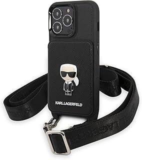 Coque de protection rigide karl lagerfeld saffiano avec porte-cartes en métal emblématique pour iphone.