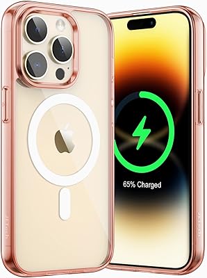 Coque mobile magnétique jetech pour iphone 14 pro max 6,7 pouces, compatible avec le chargement sans fil magsafe, coque mobile antichoc, dos transparent anti-rayures (or rose).