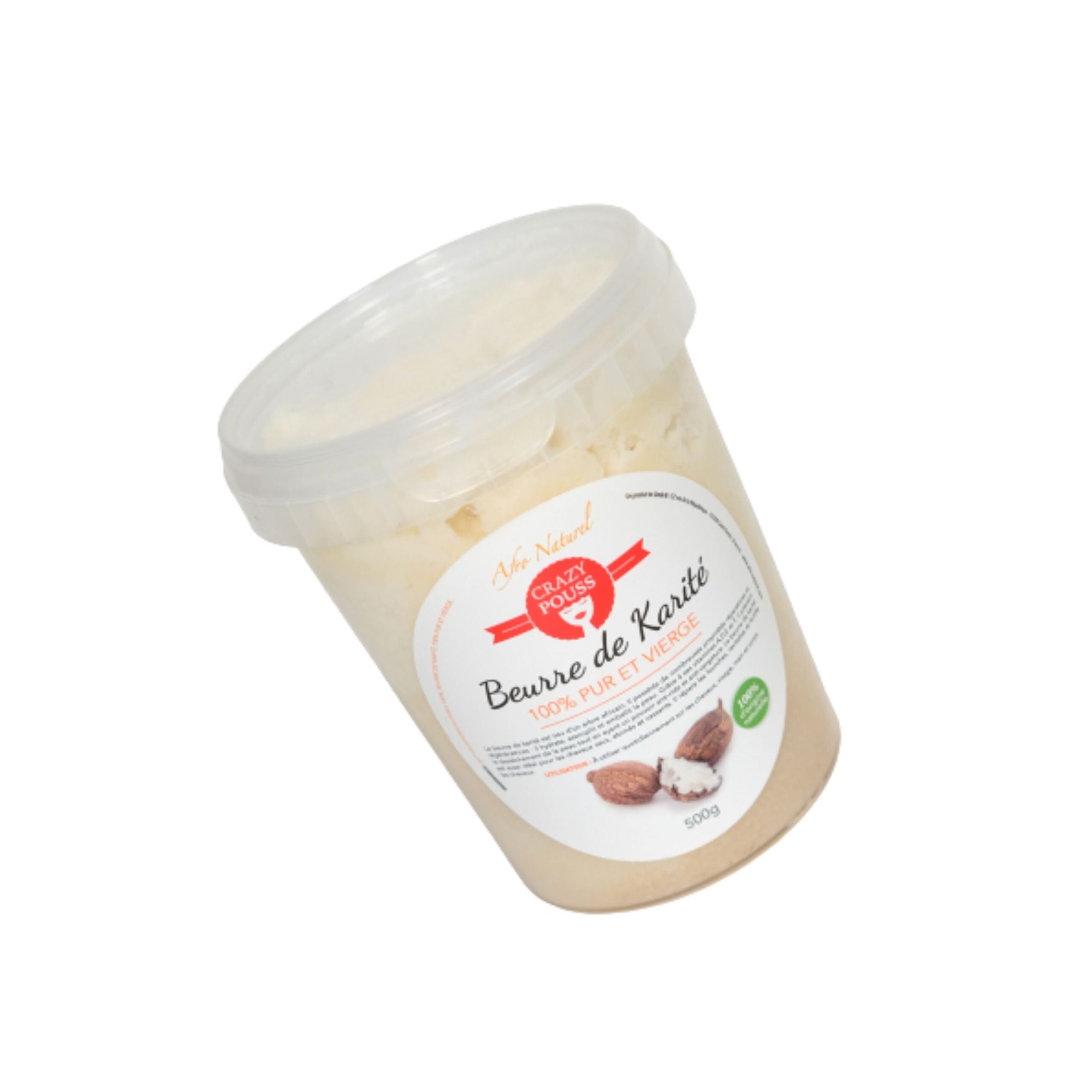 Le beurre de karité 100% naturel pur et vierge de la marque Crazy Pouss est idéal pour nourrir aussi bien la peau et que les cheveux. Il possède également une action protectrice et favorise le renouvellement cellulaire.
