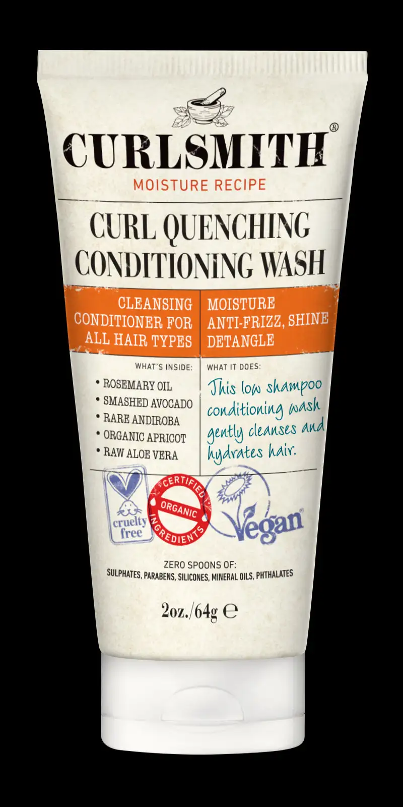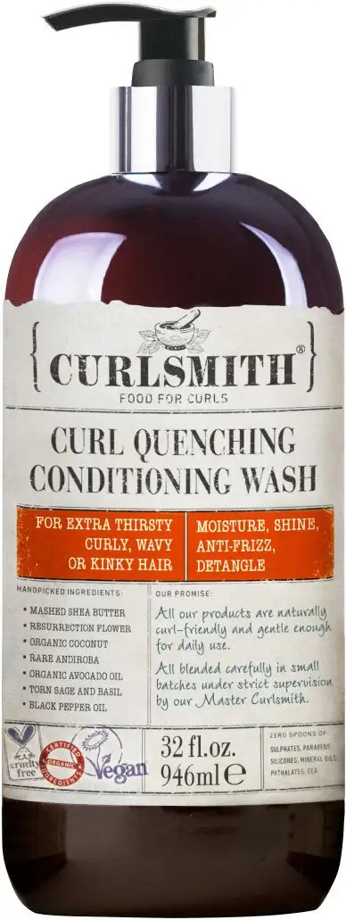 Notre Curl Quenching Conditioning Wash est un Co-wash incroyablement doux mais efficace. Il s agit essentiellement d un après-shampooing contenant un peu d ingrédients nettoyants, qui aideront à faire fondre la saleté et l accumulation tout en étant extrêmement doux pour le cuir chevelu, en gardant les cheveux doux, hydratés et démêlés sans enlever leurs huiles naturelles. Parce qu il est si doux, vous pouvez l utiliser tous les jours. Veuillez simplement noter qu il ne moussera pas. Nous n y avons pas mis de sulfates, c est pourquoi il ne mousse pas autant. Il va certainement nettoyer vos cheveux, les revitaliser et aider à les démêler – les laissant vraiment doux. Vous n avez pas besoin d utiliser d autre shampoing avant, ni d autre après-shampooing. Notre Co-Wash devrait suffire. les directions Appliquez une noisette généreuse de produit sur les cheveux mouillés. Massez sur le cuir chevelu et lissez sur les longueurs, en démêlant avec les doigts jusqu à ce que vous vous débarrassiez de tous les nœuds. Laisser agir 3 minutes, rincer et révéler des boucles soyeuses et démêlées. Principaux avantages : Nettoyer, Hydrater, Anti-frisottis, Démêler, Douceur. Type de cheveux: Bouclé, Ondulé, Texturé, Enroulé, Coloré, Sec, Abîmé. Ingrédients Eau (Aqua), alcool cétéarylique, phosphate d amidon hydroxypropylé, esters cétyliques, chlorure de behentrimonium, cocamidopropyl bétaïne, parfum (parfum), beurre de butyrospermum parkii (karité), extrait de selaginella lepidophylla (fleur de résurrection), huile de cocos nucifera (noix de coco), carapa guaianensis (Andiroba) Huile de graines, Huile de Persea Gratissima (Avocat), Extrait de feuille de Salvia Officinalis (Sauge), Extrait de feuille d Ocimum Basilicum (Basilic), Extrait de graine de Piper Nigrum (Poivre noir), Jus de feuille d Aloe Barbadensis (Aloe Vera), Rosmarinus Officinalis ( Extrait de feuille de romarin), huile de graines d Helianthus Annuus (tournesol), glycérine, chlorure d hydroxypropyltrimonium de guar, panthénol, caprylate de glycéryle, undécylénate de glycéryle, sorbate de potassium, benzoate de sodium, hydroxyde de sodium, chlorure de sodium, acide citrique, EDTA disodique, limonène, linalol. Curlsmith est certifié par la Vegan Society et PETA.