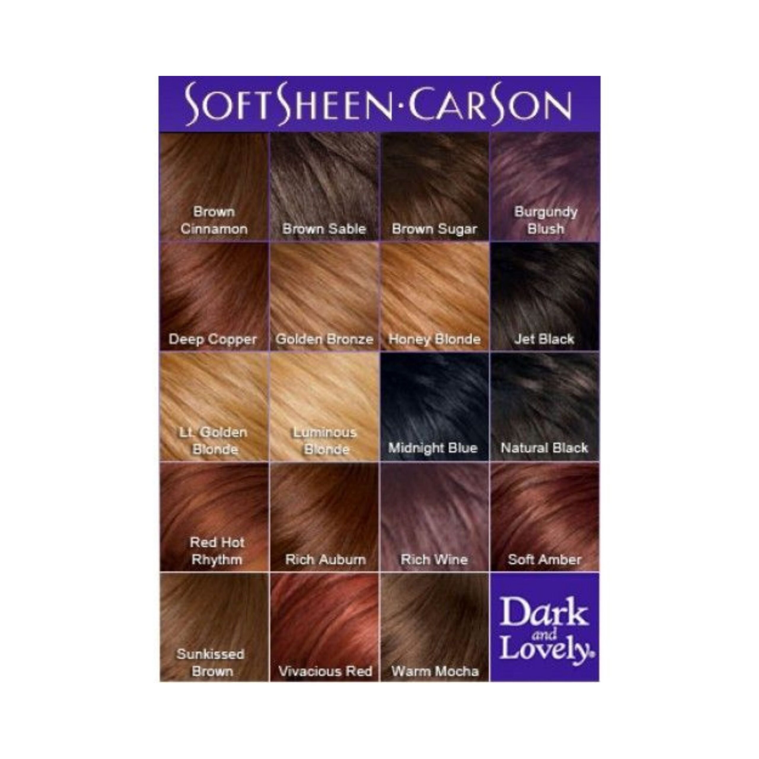 Parfait pour changer de couleur au grés de vos envies, le kit de coloration permanente Fade Resist de la marque Dark and Lovely permet de colorer intensément les cheveux jusqu’à 8 semaines. Grâce à sa formule composée à base d’huile d’argan, d’huile d’olive, d’huile d’avocat et de vitamine E, cette coloration, teinte les cheveux tout en les nourrissant intensément. Elle conserve ainsi leur brillance et les protège de la casse. Coloration permanente : 8 semaines Couleur vibrante et intense Renforce la fibre capillaire Formule revitalisante et hydratante Convient parfaitement aux cheveux défrisés Apporte douceur et éclat Facile d’utilisation Sans ammoniaque Existe en plusieurs couleurs : 371 Noir de Jais / Jet Black372 Noir Naturel / Natural Black373 Châtain Profond / Brown Sable374 Marron Cuivré / Rich Auburn377 Chatain Doré / Sun Kissed Brown378 Blond Miel / Honey Blonde379 Bronze Doré / Golden Bronze380 Blond Châtaigne / Chestnut Blonde382 Midnight Blue / Bleu Nuit 386 Sucre Brun / Sugar Rich394 Rouge Vif / Vivacious Red396 Blond Lumineux / Luminous Blonde Conseils d’utilisation : La coloration peut provoquer une réaction allergique qui, dans certains cas rares, peut être grave. Il est donc indispensable de lire attentivement la notice avant l’utilisation et de suivre les instructions. Précautions d’emploi : Éviter tout contact du produit avec la peau et les yeux, ne pas utiliser pour la coloration des cils et des sourcils. Ne pas suivre cette consigne peut entraîner la perte de vue. Rincer immédiatement les yeux si le produit entre en contact avec ceux-ci. Porter les gants appropriés fournis dans l’étui. Bien rincer les cheveux après l’utilisation. Ne pas utiliser si vos cheveux ont été colorés par du henné ou une coloration progressive. Ne pas appliquer juste après une décoloration, un défrisage, lissage durable ou une permanente ( attendre 2 semaines avant d’appliquer la coloration). Tenir hors de la portée des enfants. Ne pas utiliser chez l’enfant. Ce kit contient : 1 flacon applicateur de crème révélatrice 70,5 ml1 flacon de coloration 47 ml1 flacon de baume de soin 55 ml1 mode d’emploi 1 paire de gants en plastique Ingrédients : Crème révélatrice : cream developer / 1190015: aqua / water / eau hydrogen peroxide cetearyl alcohol trideceth-2 carboxamide mea ceteareth-25 glycerin, pentasodium pentetate, sodium stannate, tetrasodium pyrophosphate, phosphoric acid F. I.l d141/19 Coloration nutritive intense : Aqua/ Water/ Eau, Alcohol Denat., P E G-4 Rapeseedamide, Glyceryl Lauryl Ether, Deceth-3, Propylene Glycol, Ethanolamine, Laureth-5 Carboxylic Acid, Dipropylene Glycol, Hexylene Glycol, Poloxamer 338, Polyquaternium-6, Resorcinol, Oleyl Alcohol, P- Phenylenediamine, Parfum/ Fragrance, 2.4- Diaminophenoxyethanol H Cl, Thiolactic Acid, E D T A, erythorbic acid,hydroxypropyl bis (2-hydroxyethyl)-p-phenylenediamine sulfate, resorcinol, 2-methylresorcinol, p-phenylenediamine, 2,4-diaminophenoxyethanol hci. F. I. L D52783/2 U S patents : U S 6,692,539, U S 7, 297, 167, U S 7, 223, 294, U S 7,153, 331, U S 7, 115, 147 Baume de soin : Aqua/ Water/ Eau, Cetearyl Alcohol, Elaeis Guineensis Oil/ Palm Oil, Behentrimonium Chloride, Parfum/ Fragrance, Pyrus Malus Extract/ Apple Fruit Extract, Glycerin, Isopropyl Alcohol, Stearamidopropyl Dimethylamine, Niacinamide Pyridoxine H Cl, Butyrospermum Parkii Butter/ Shea Butter, Citric Acid Olea Europaea Oil/ Olive Fruit Oil, Saccharum Officinarum Extract/ Sugar Cane Extract/ Extrait De, Canne a Sucre, Chlorhexidine Dihydrochloride, Persea, Gratissima Oil/ Avocado Oil, 2- Oleamido-1, 3, Octa- Decandediol, Ribes Nigrum Oil/ Black Currant Seed, Oil, Citrus Medica Limonum Peel Extract/ Lemon Peel, Extract, C I 19140/ Yellow 5, Camellia Sinensis Leaf, Extract, C I 15985/ Yellow 6, F. I. L D176331/1