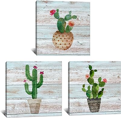 Decohome 3 pièces art mural cactus vie aquatique simple plantes vertes cactus succulents fond imprimé en bois encadré pour chambre d’enfant décoration de salon 12×12.