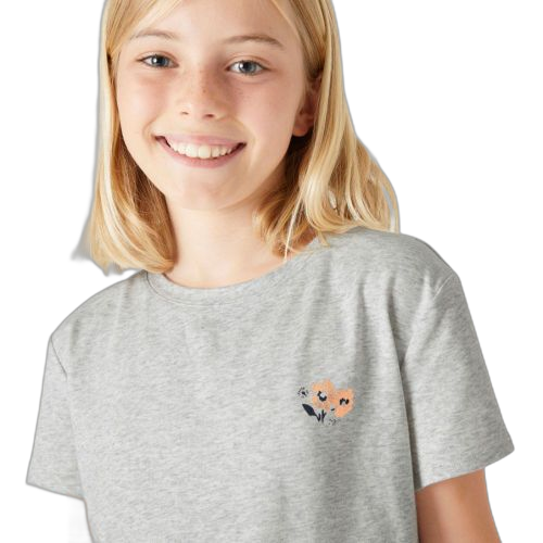 N’attendez plus, offrez à votre fille le T-shirt Domyos en coton gris et laissez-la s’épanouir à travers le sport !