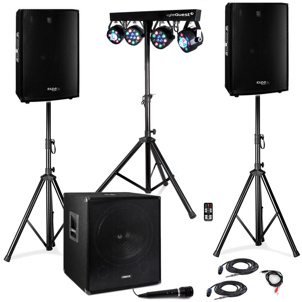 Enceintes sono Vonyx DISCO15B-SS01B-SMWBA18-MIC-CABLES