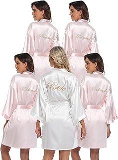 Ensemble de robe kimono en satin 5 pièces pour femme, lingerie de robe de mariée pour mariée et demoiselles d’honneur pour se préparer avec broderie.