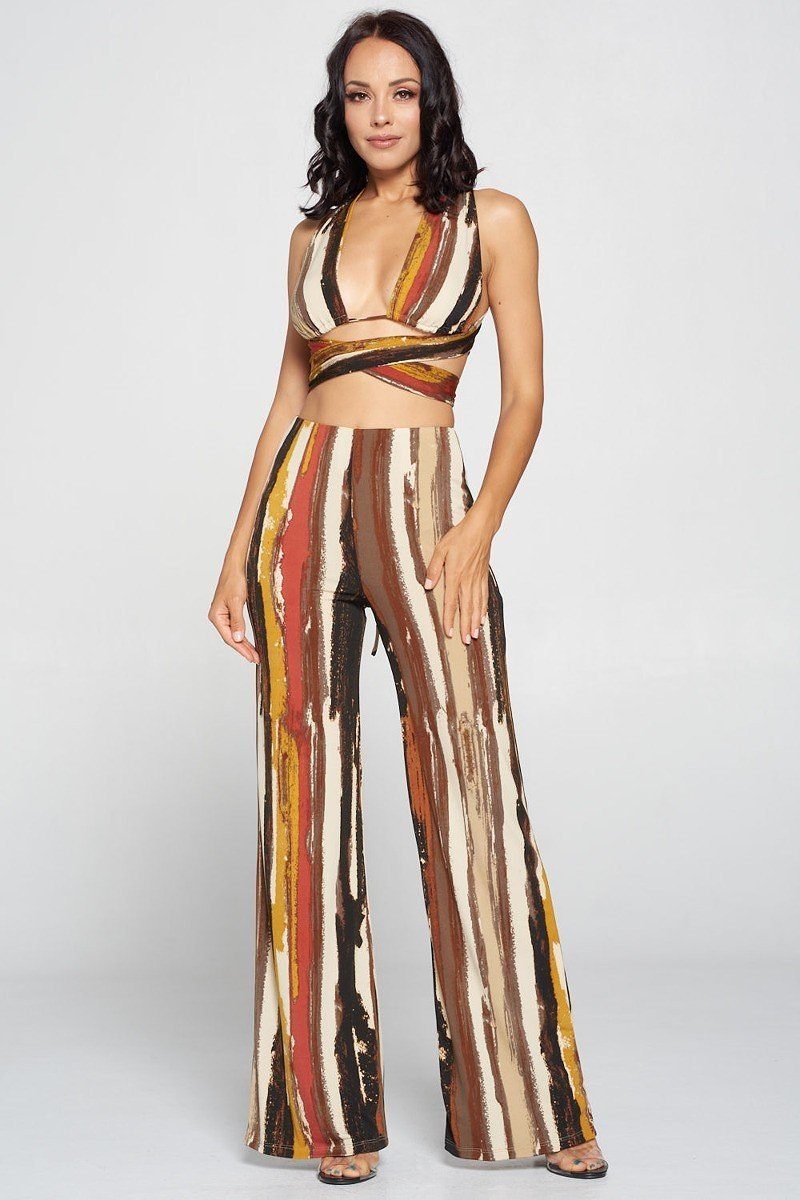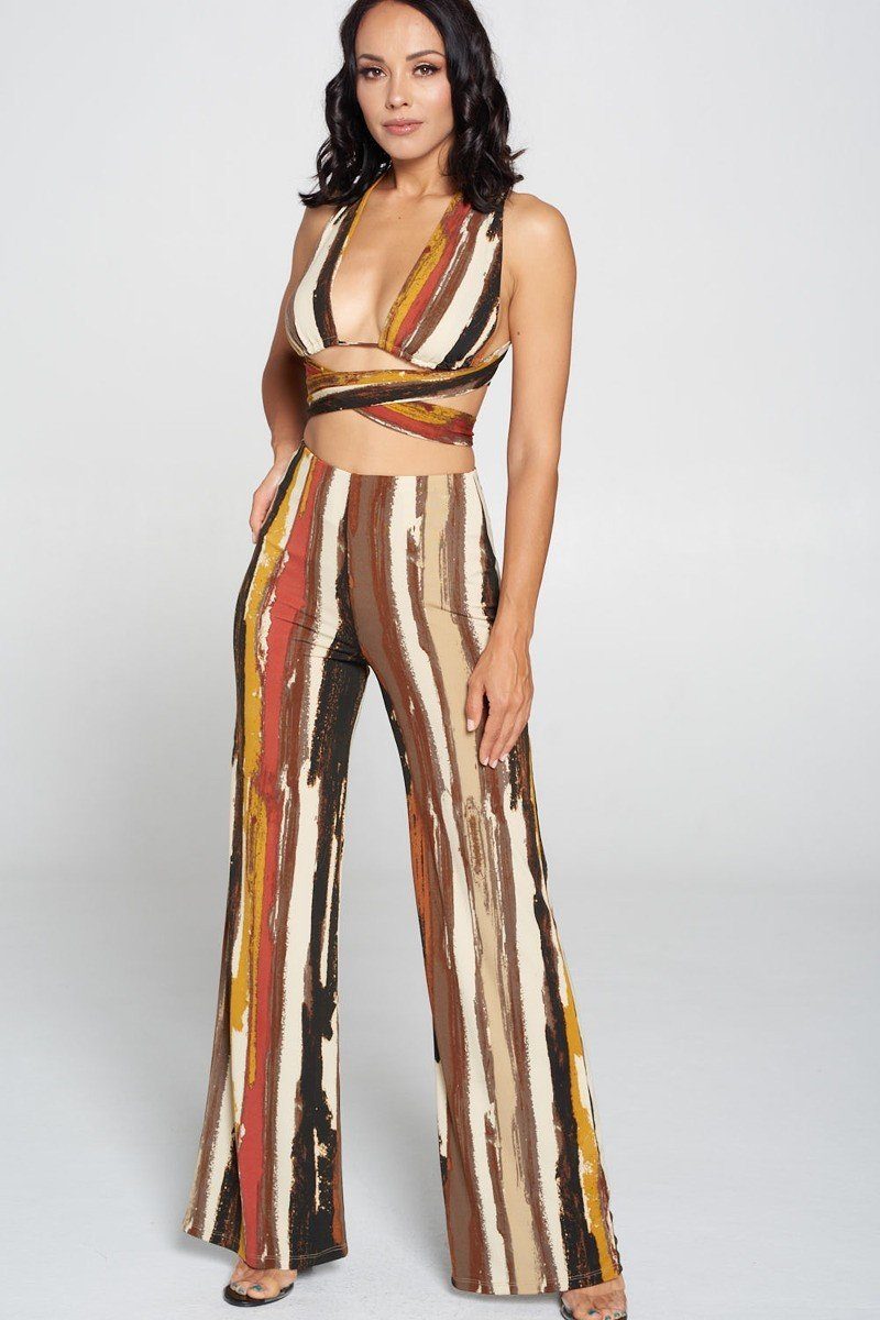 ENSEMBLE HAUT COURT À RAYURES ET PANTALON LARGE