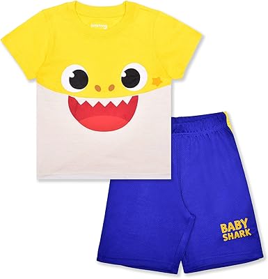 Ensemble t-shirt et short baby shark pour bébés garçons et tout-petits – bleu/jaune.