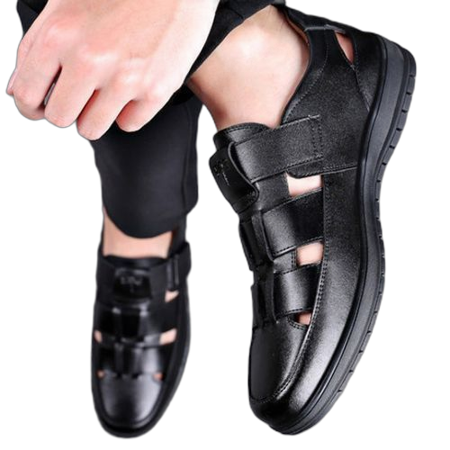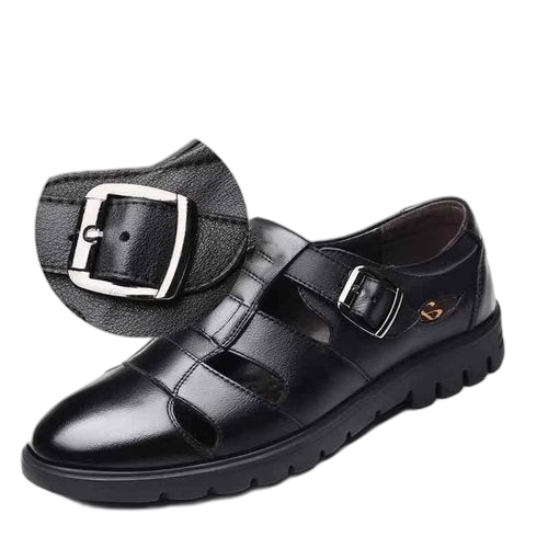 Fashion chaussures en cuir creuses confortables classiques pour hommes noir