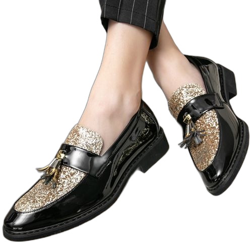 Chaussures formelles en simili cuir pour hommes – Noir et doré