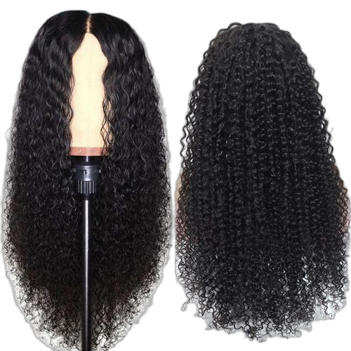 Perruque Femme Moyenne Division Long Bouclé Noir 60cm