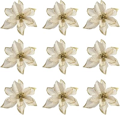 FLEURS DE NOËL SCINTILLANTES 10 PIÈCES, FLEURS DE POINSETTIA ARTISTIQUES POUR DÉCORATION D’ARBRE