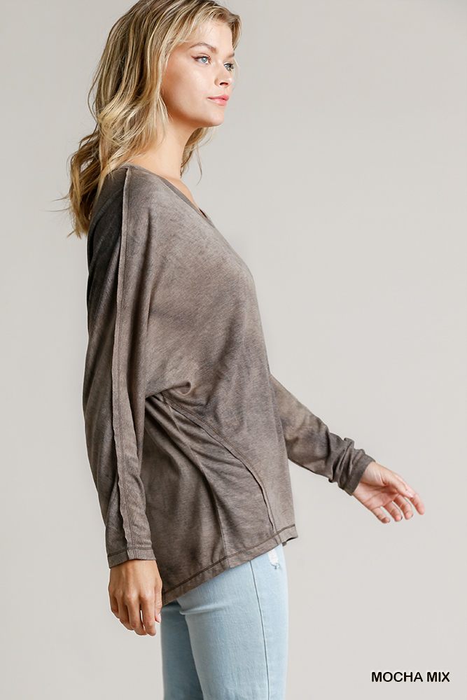 Haut à manches longues et col rond tie-dye avec détails à bords bruts