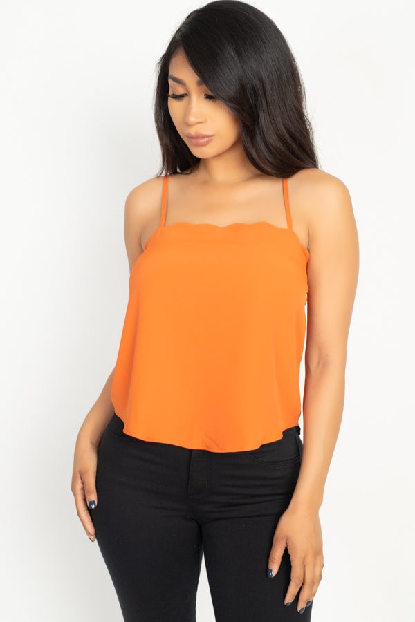 Un haut tissé, des bretelles réglables et une ouverture festonnée