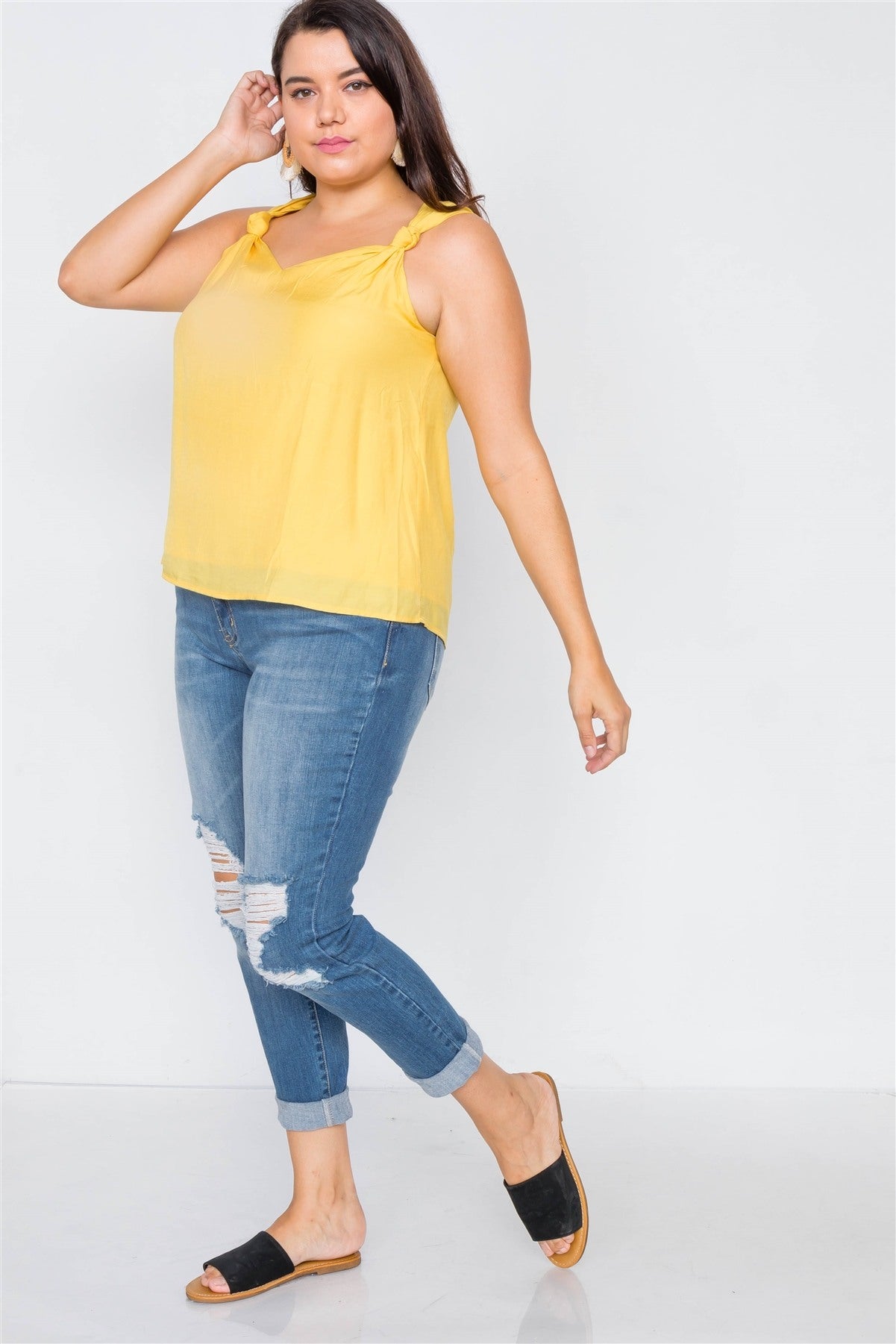 encolure en V, doublée, manches froncées aux épaules, épaules nouées.