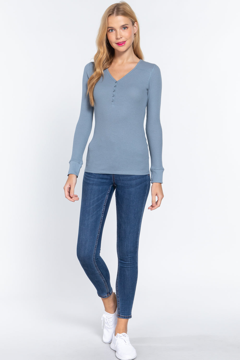 HAUT THERMIQUE LONG SLV À COL EN V AVEC PLAQUETTE