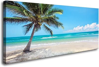 Images de plage murales pour chambre à coucher, palmiers tropicaux, océan, paysage naturel, impressions sur toile, thème paysage marin bleu pour salon, bureau, cuisine, décoration murale de la maison, prêtes à accrocher (20″ x 40″).