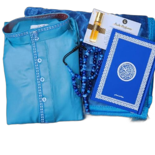 COFFRET DE PRIÉRE DE 6PCS TAPIS DE PRIEREPARFUM DJALABA CHAPELET STYLO LIVRE CITADELLE DU MUSULMANE