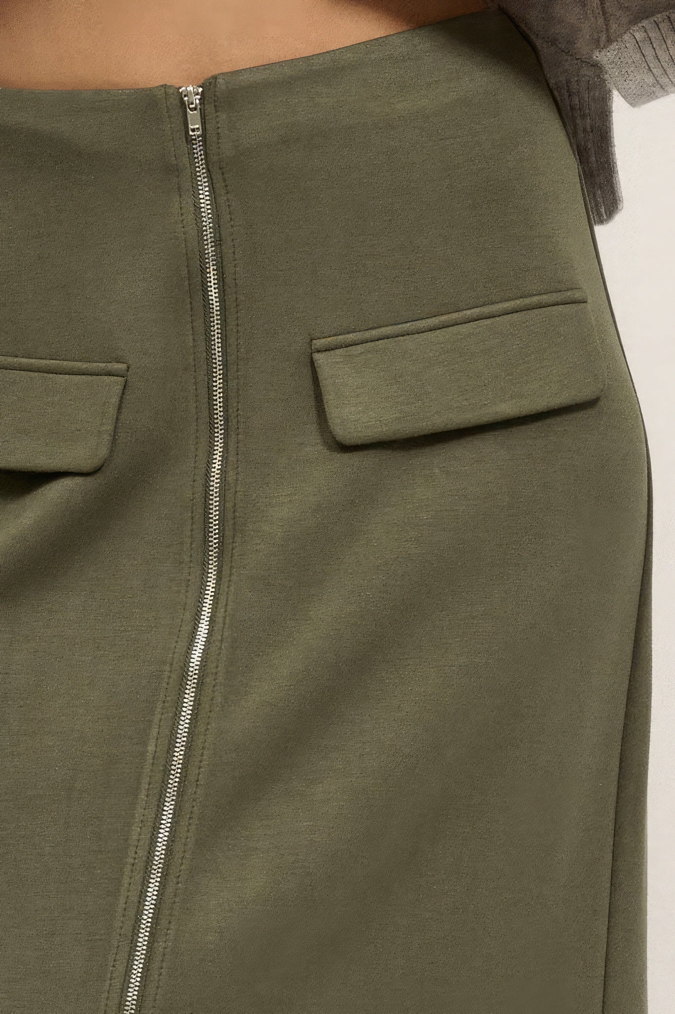 Découvrez le mélange parfait de sophistication et de confort. La fermeture éclair sur le devant, les fentes et les rabats de poche décoratifs font de cette jupe un choix polyvalent pour diverses occasions.